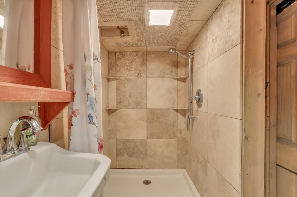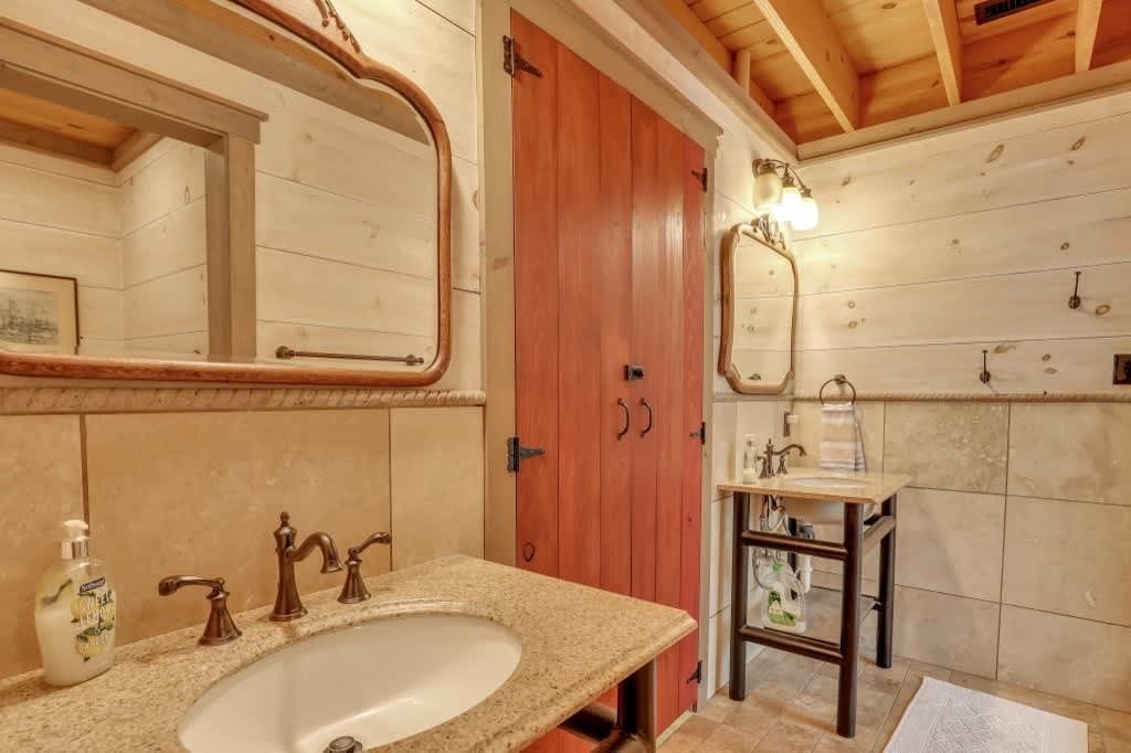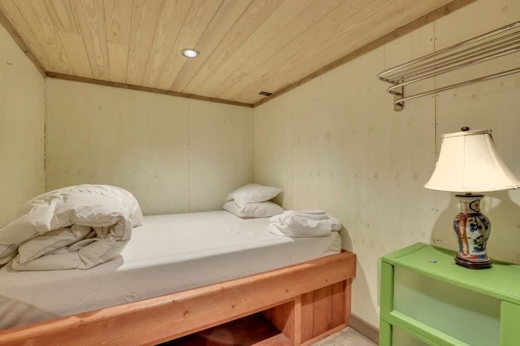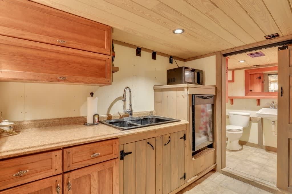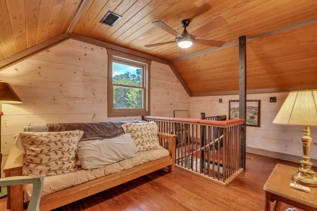 This one-of-a-kind residence features four spacious bedrooms, thoughtfully spread across multiple levels, accommodating up to 14 guests. The main level includes a queen bedroom with a cozy sitting area, a daybed, and a full bath. Upstairs, you'll find a charming setup with two bunk beds and a single bed, along with a full bath. The lower level boasts three queen bedrooms, a full kitchen, and another full bath, providing ample space for family gatherings or vacations with friends.